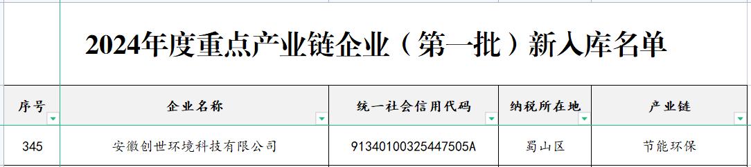 喜報!創(chuàng)世環(huán)境榮登2024年度合肥重點產(chǎn)業(yè)鏈企業(yè)名錄